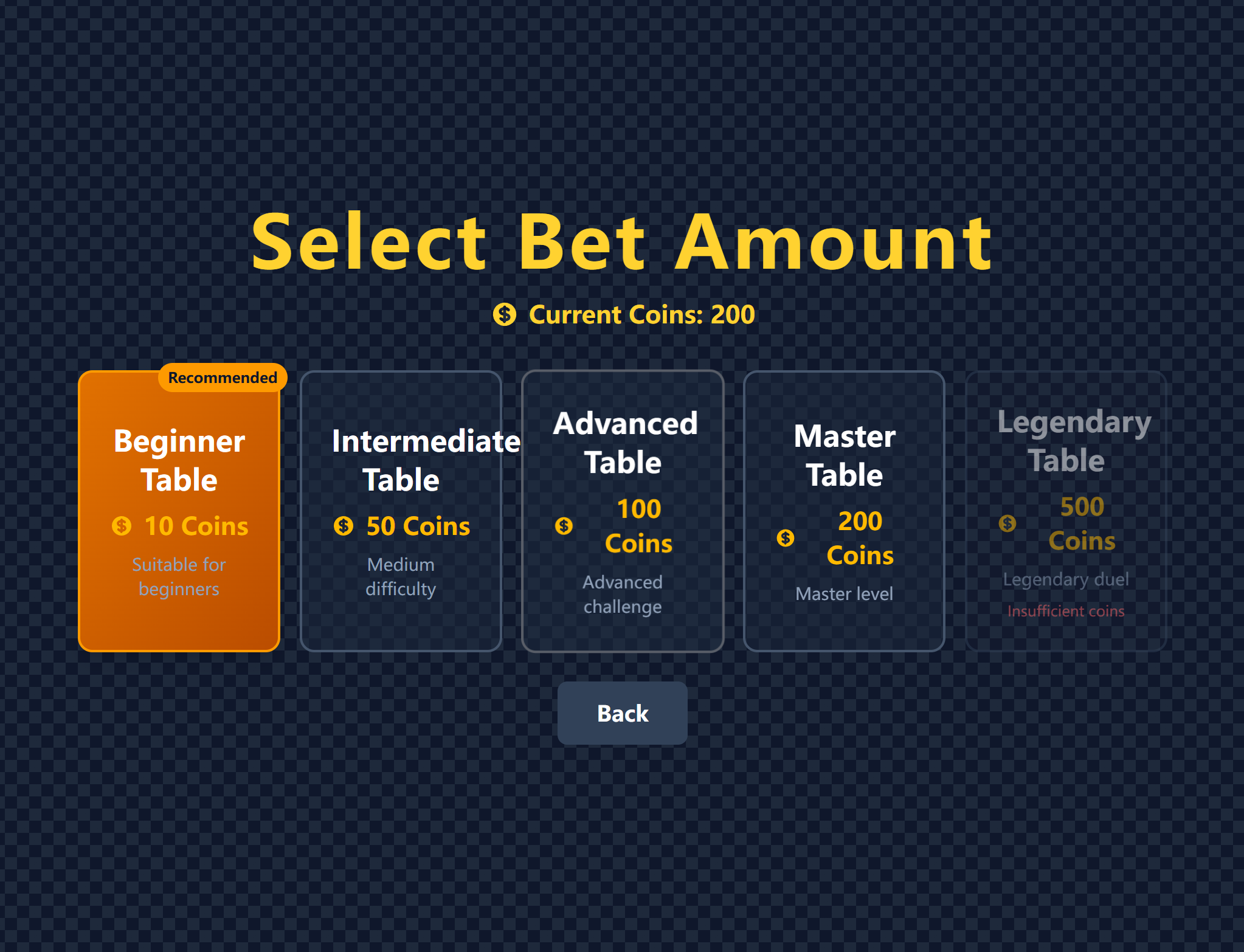2. Choose a game table (different betting amounts)